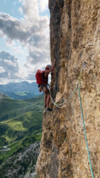 We took on a beautiful but sparsely protected route – a real adventure. It pushed us mentally and physically, but step by step we made it to the top. Just in time for sunset.